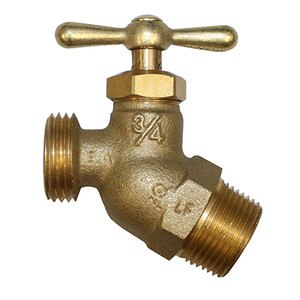 3/4" MIP Brass (No Lead) Boiler Drain with Hose Bibb and Angle Outlet (30 Degrees, 3/4" Hose Thread Outlet) | BBDNL75MA